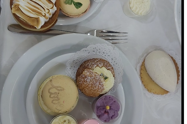 За столом.